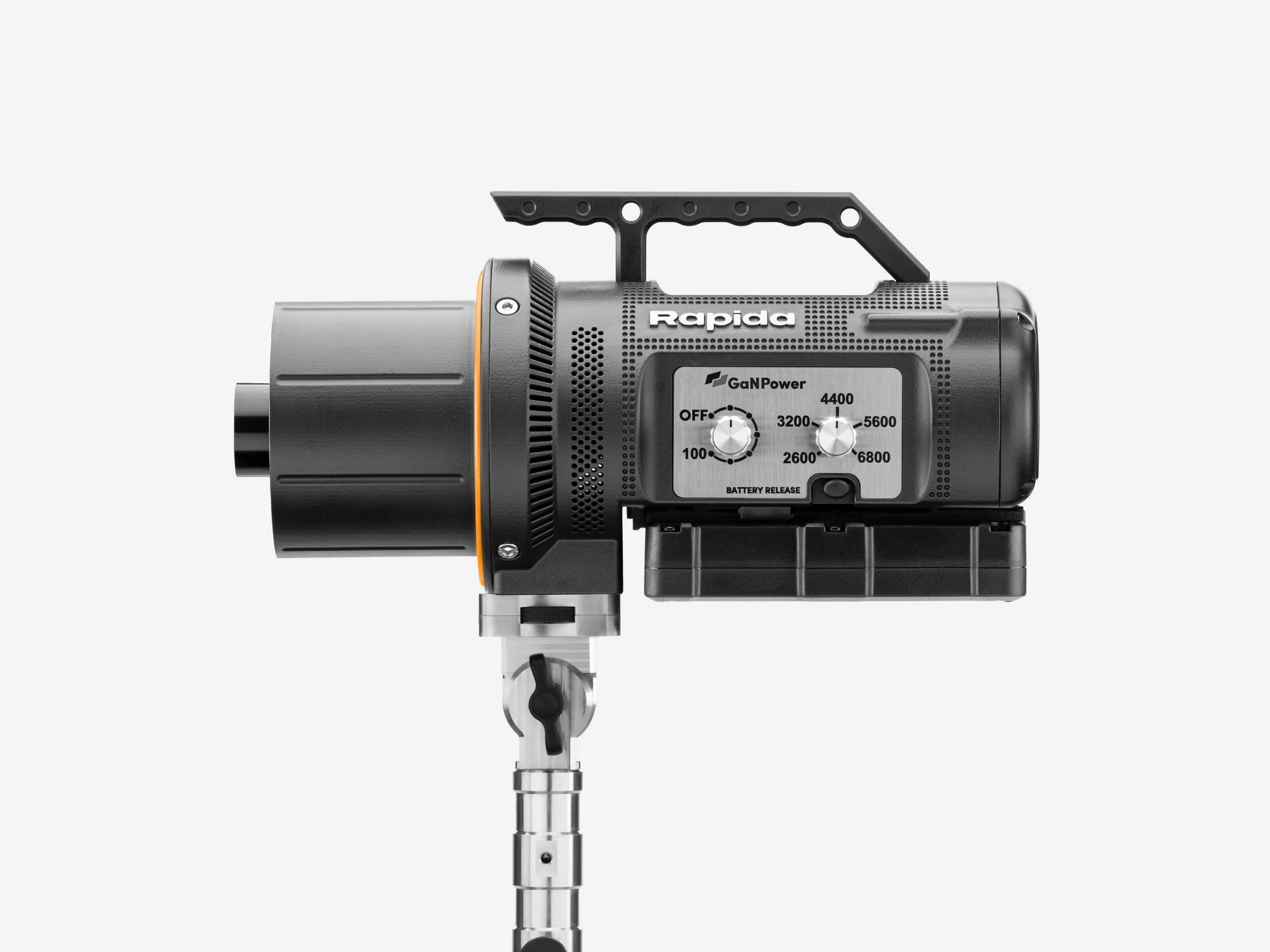 200w LED BI color uten ballast, driftes av V-lock batterier. Kan kjøres på nettdrift.